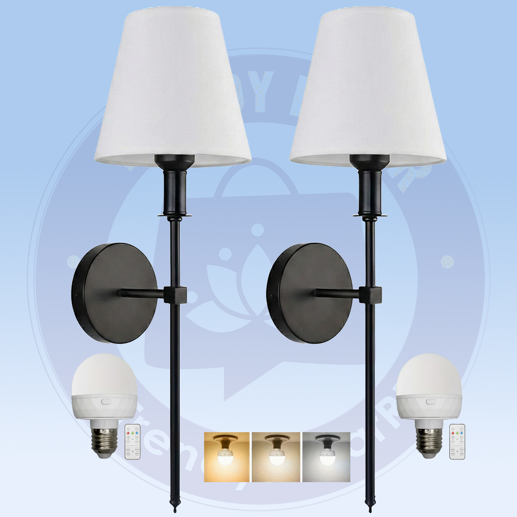Lampara Aplique de Pared Moderno Negro con Bombillo LED RGB Recargable (Control Remoto)