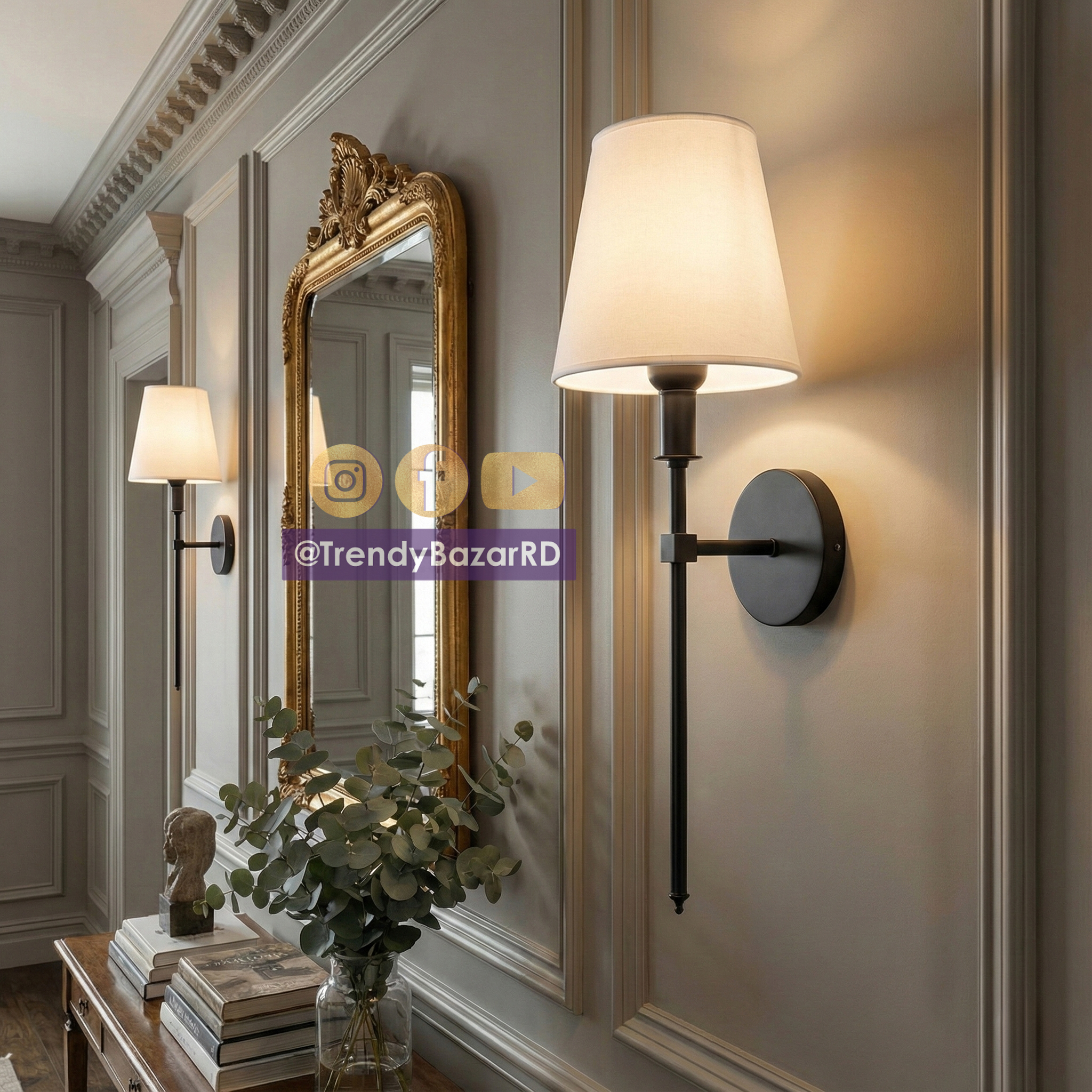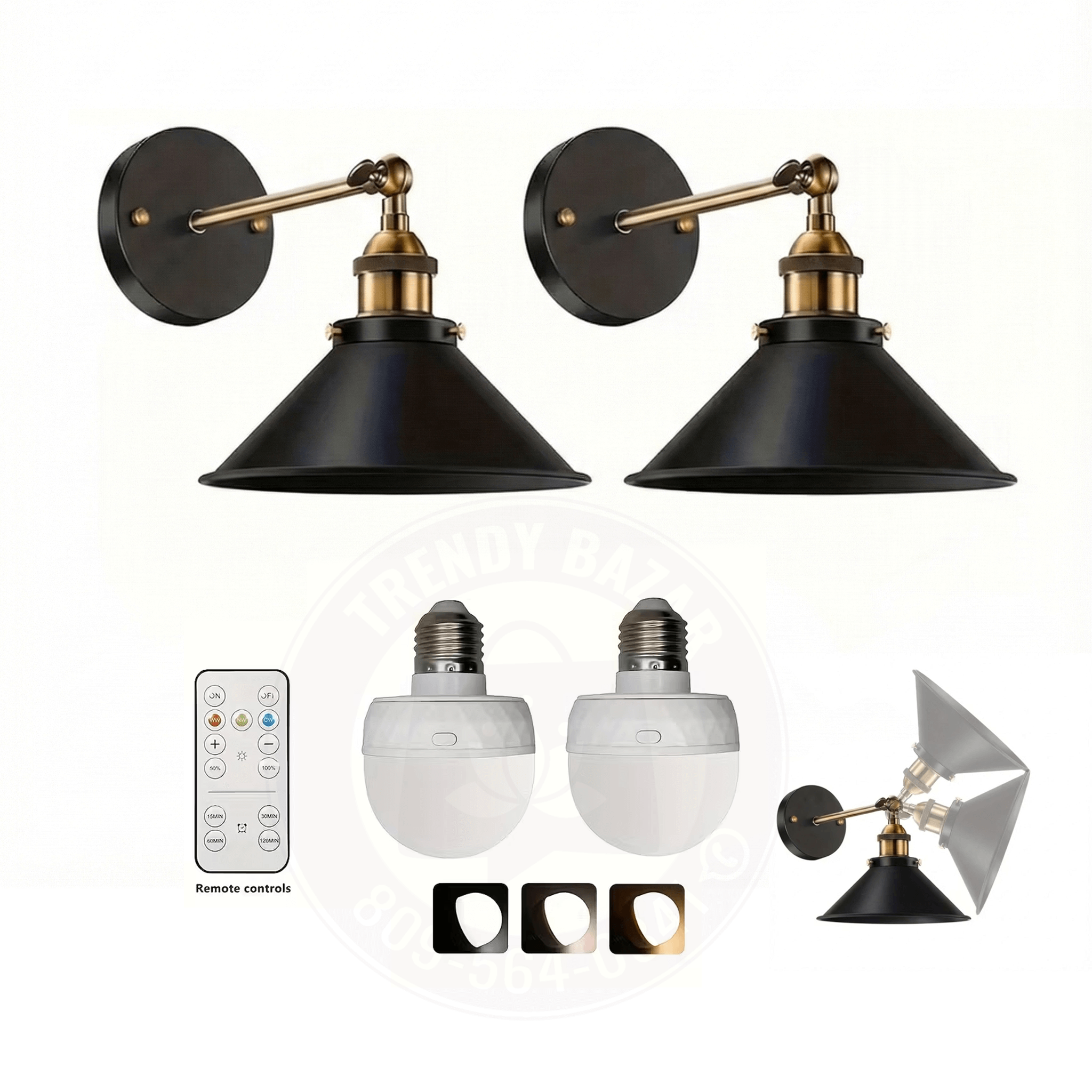 Lampara Aplique de Pared Moderno Negro con Bombillo LED Recargable (Control Remoto)