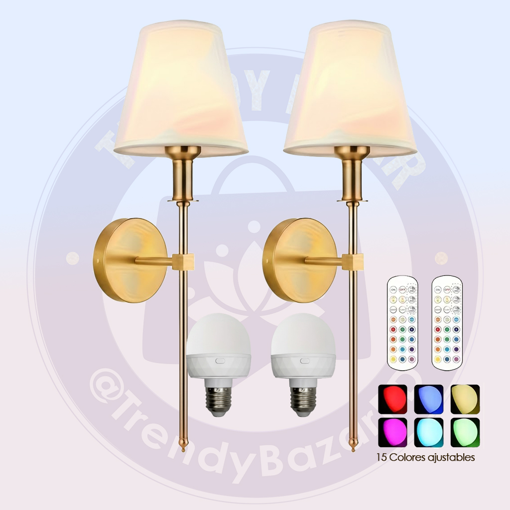 Lampara Aplique de Pared Moderno Dorado con Bombillo RGB LED Recargable (Control Remoto)