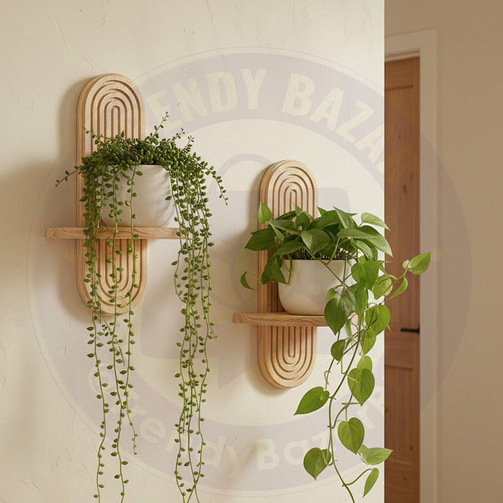 Set de 2 Repisas Flotantes de Madera en Arco – Estantes de Pared con Diseño Ranurado Estilo Boho Aesthetic